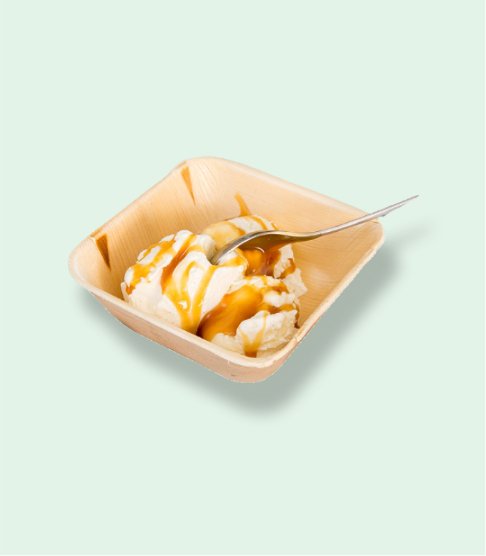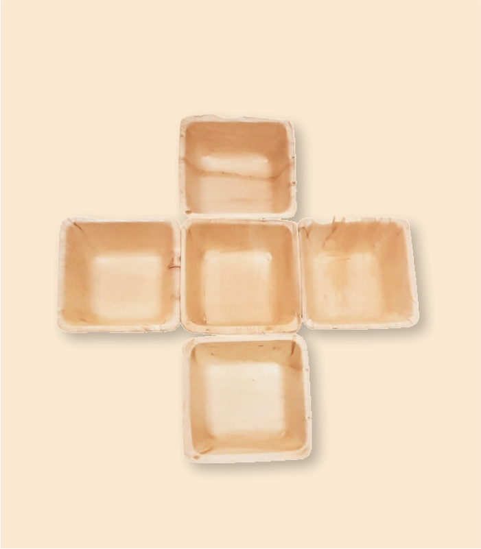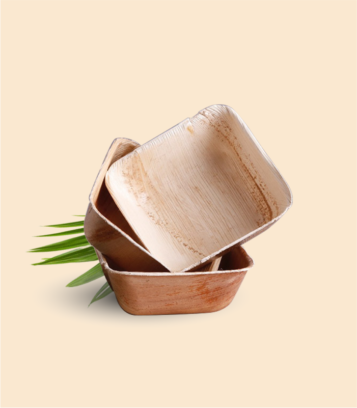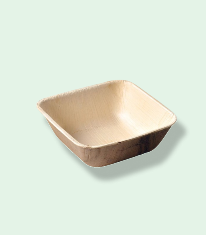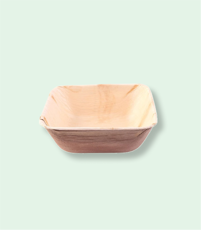 5-inch areca leaf bowls are very popular at events, parties, and other occasions. The 5’’ square bowls are used for salads, dips, snacks & many more. The refrigeration and microwaveable feature make it handier to use. Dump it away after usage & stay worry-free as it gets composted within 6 weeks.